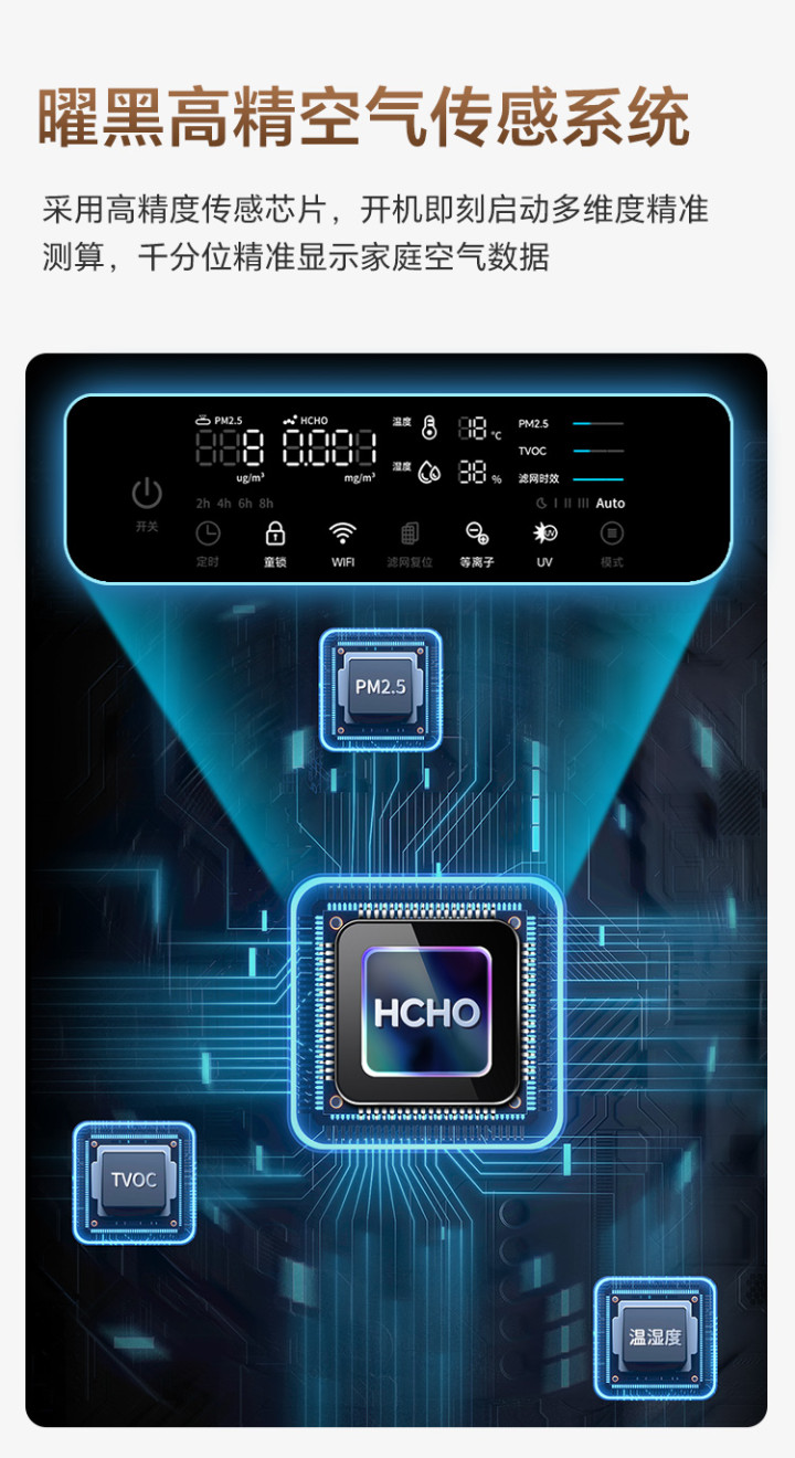 智能变频调节,按需分配能耗:曜黑高精传感系统实时监测污染物浓度,AI智能管家自动调节动力输出 —— 污染重时自动提效,污染轻时降低功耗。比如深夜空气洁净度高时,净化器自动切换至 “节能巡航模式”,功耗进一步降低至20W以下,既保持基础净化,又避免能源浪费,让 “长效清新” 与 “节能省钱” 两者兼得。