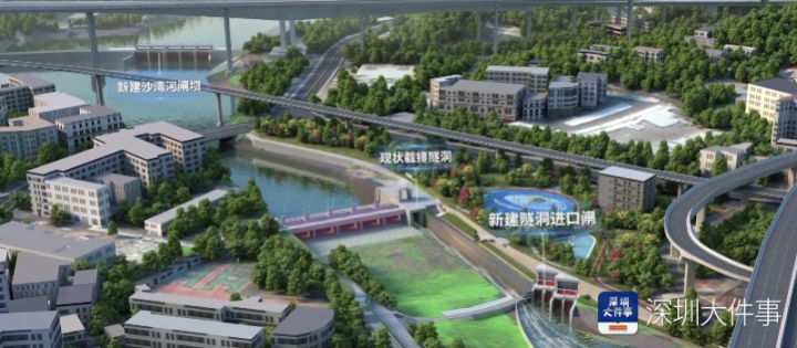受限于城市空间和土地资源,仅仅依赖调蓄湖无法完全承担雨洪调节功能,因此工程同时建设大直径截排隧洞,实现“蓄排结合”,既缓解洪峰压力,又有效提升防洪安全。同时,项目将同步新建一道沙湾河闸坝,形成深圳水库防护的最后一道屏障,确保五十年一遇洪水不进入深圳水库。